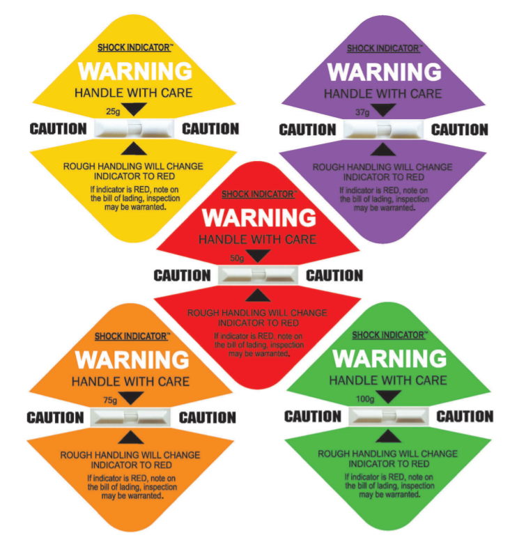 Chosen Shock Indicator indicates possible damage during transit. Highly visible Shock Indicator indicates when an excessive impact occurs that can potentially damage products.